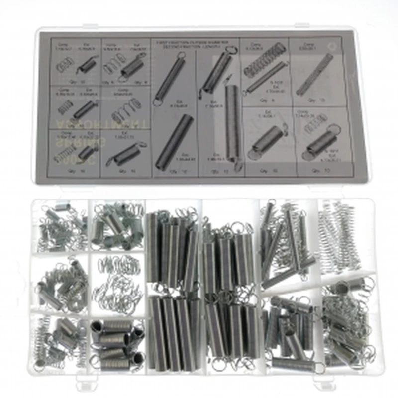 Šis išsamus tempimo ir suspaudimo spyruoklių rinkinys siūlo platų įvairių dydžių spyruoklių pasirinkimą, skirtą skirtingiems remonto, priežiūros ir automobilių bei „pasidaryk pats“ projektų poreikiams.