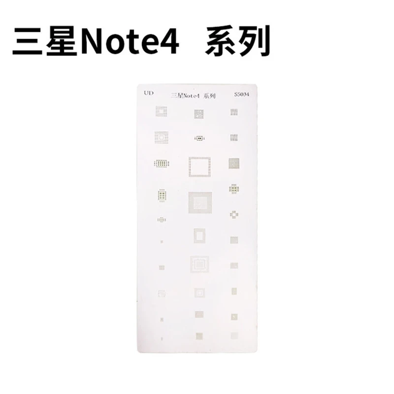 Šis šablonas suderinamas tik su Samsung Note 4, užtikrinant tikslų pritaikymą ir optimalius rezultatus. Rekomenduojama jį naudoti su litavimo stotimis ir profesionaliais reballing įrankiais, kad būtų užtikrinta darbo kokybė.