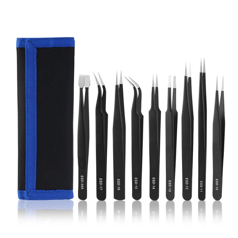 Šis rinkinys turi ESD apsaugą, kuri jį išskiria iš įprastų pincetų, nes padeda išvengti pažeidimų dėl statinės iškrovos. Be to, nerūdijančio plieno konstrukcija užtikrina atsparumą korozijai ir didesnį patvarumą, palyginti su anglinio plieno ar prastesnių medžiagų įrankiais, kurie gali greičiau prarasti tikslumą ir rūdyti.