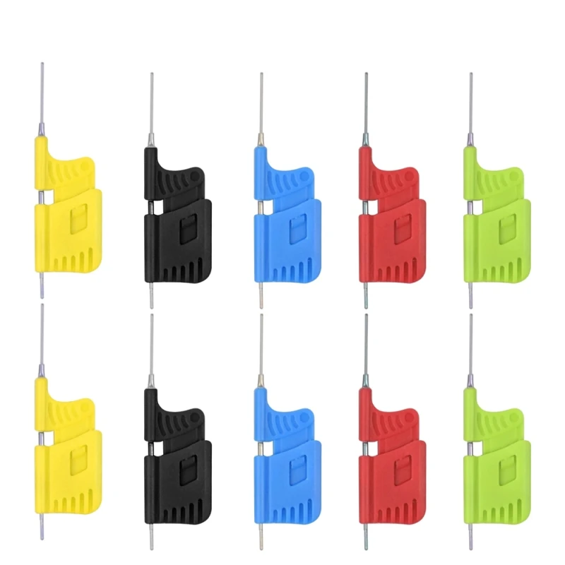 - Į pakuotę įeina 10 gnybtų, skirtų keliems bandymams vienu metu arba turėti atsarginių.