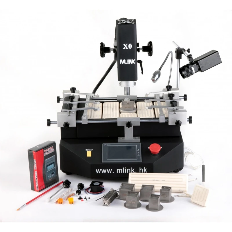 Mlink X0 reballing stotis su HD kamera yra profesionalus įrankis, skirtas BGA komponentų litavimui ir išlitavimui, užtikrinantis didelį tikslumą ir pažangų valdymą.