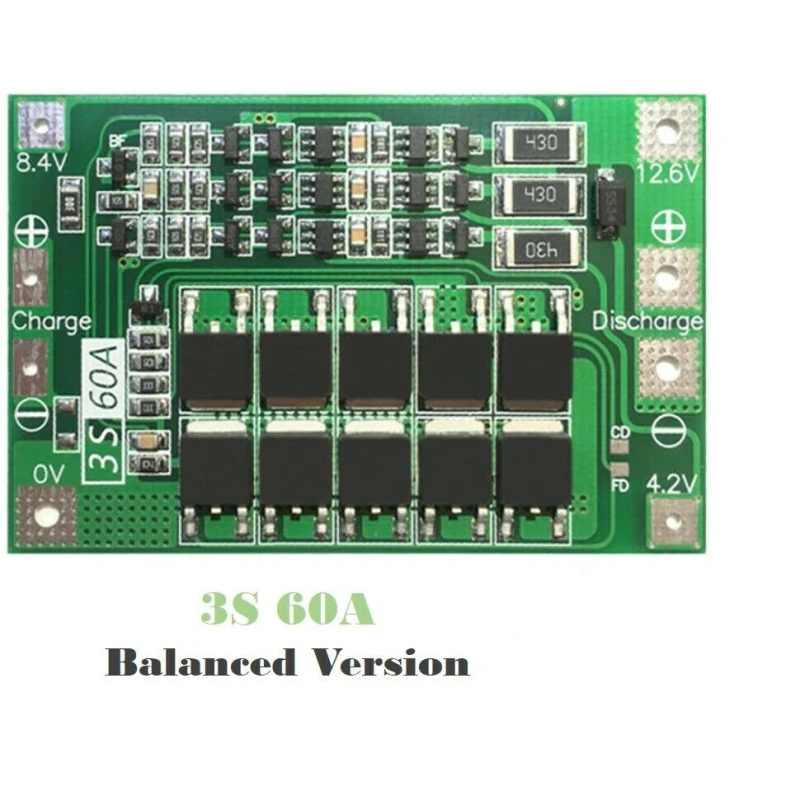 Ši apsaugos plokštė skirta 3S konfigūracijos ličio baterijoms (trys celės nuosekliai), jos maksimali nuolatinė iškrovimo srovė yra 60A, o funkcija užtikrina subalansuotą įkrovimą. Tai idealus sprendimas apsaugoti ir optimizuoti 18650, 26650 tipo baterijų bei ličio polimero baterijų veikimą.